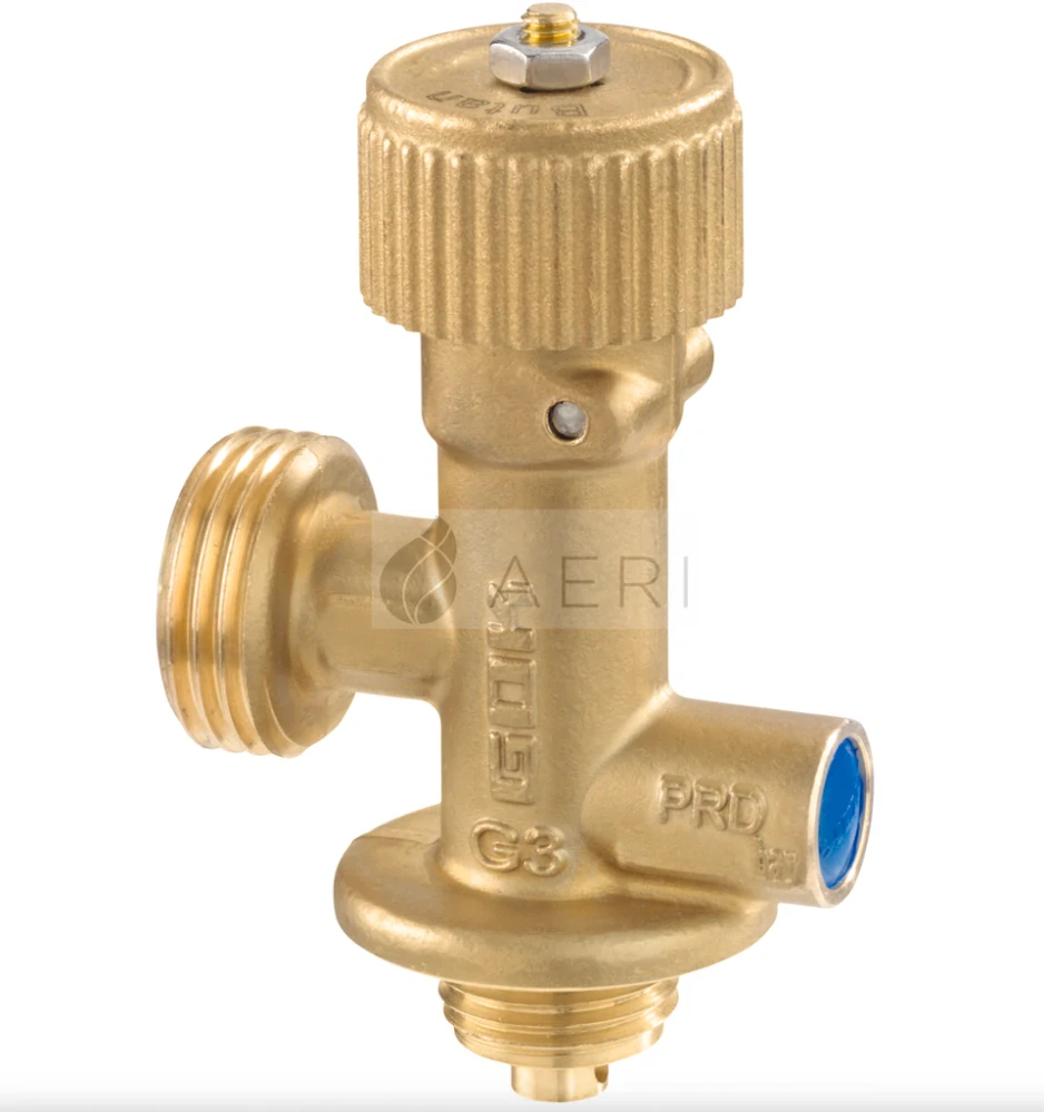 Značkový, mosazný ventil GOK k plynovým lahvím s hmotností náplně do 5 kg. Ventil je vybavený bezpečnostním pojišťovacím ventilem PRD nastaveným na tlak 14 bar.