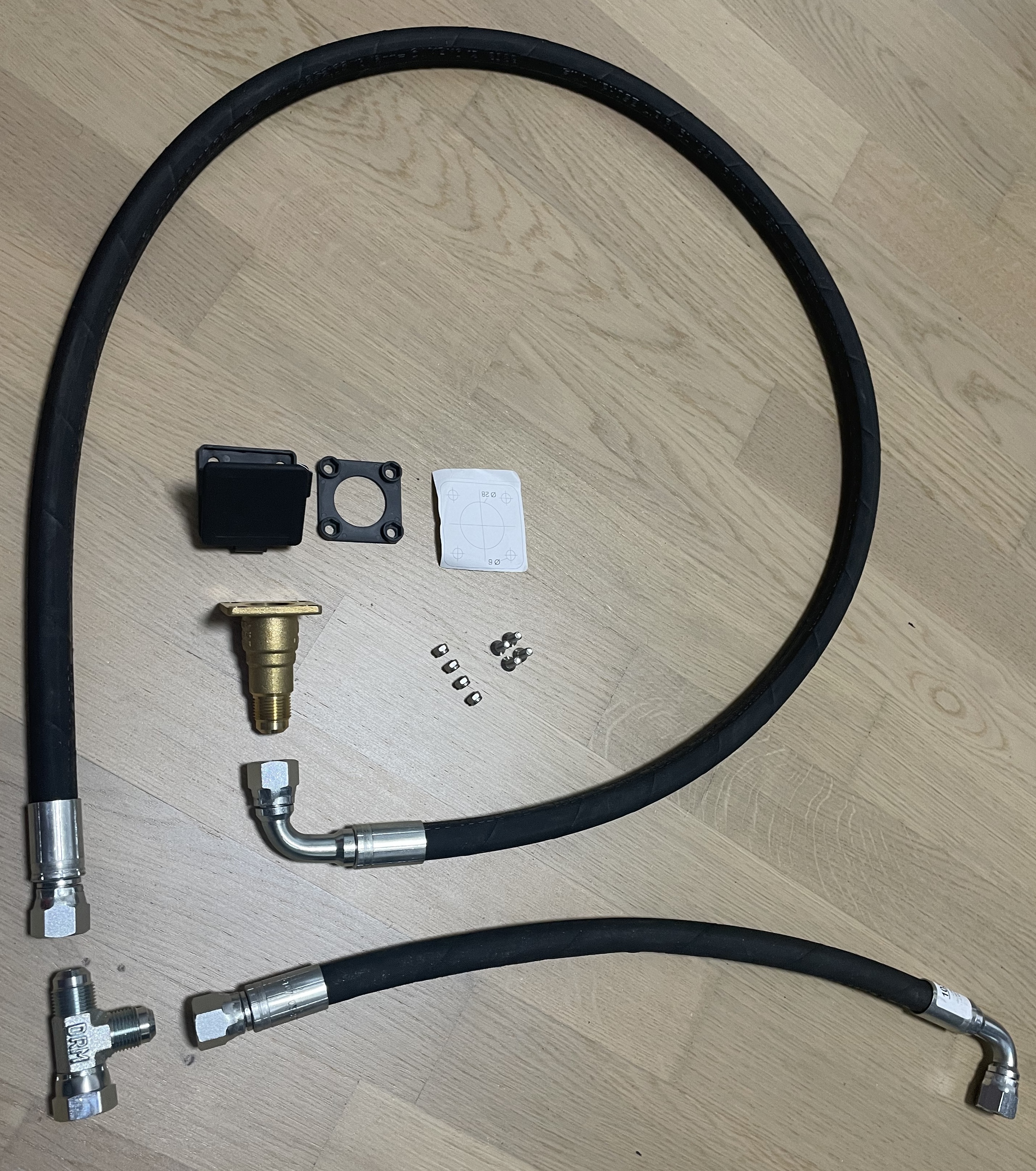 - vysokotlaká plynová hadice délky 1,5 m s přímým a 90° rohovým připojením.